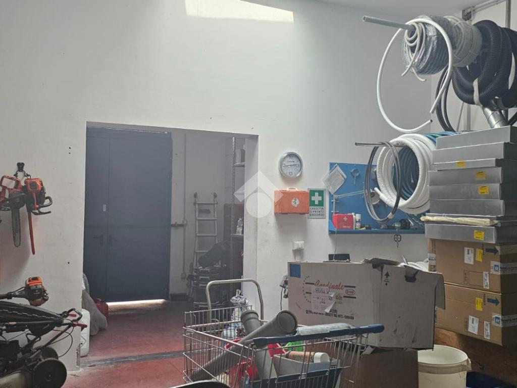 PARTE RETROSTANTE AD USO DEPOSITO CON PORTONE PER IL CARICO E SCARICO DELLE MERCI E ACCESSO PEDONALE.